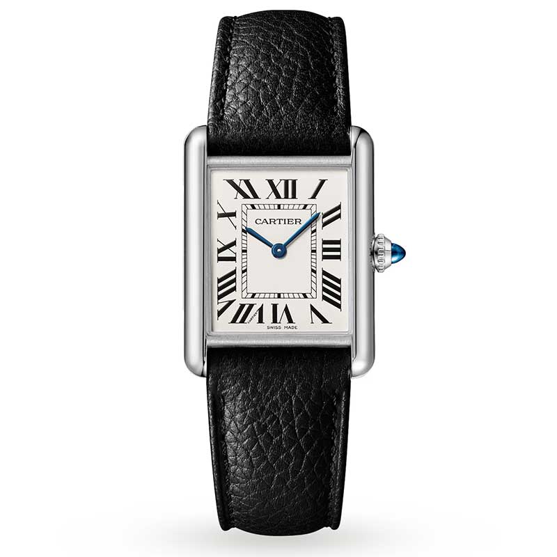 This sophisticated watch features a polished stainless steel case that reflects a modern elegance. The beaded crown is set with a synthetic cabochon-shaped spinel, adding a unique and stylish detail to the design. At the center, a silver dial provides a sleek backdrop for the black printed Roman numeral hour markers, ensuring clarity and classic appeal. The blued steel hands create a beautiful contrast, enhancing the watch's overall aesthetic. A fine printed minute track encircles the dial for precise timekeeping. Powered by a Swiss-made high autonomy quartz movement, this timepiece combines reliability and accuracy with an alternate model # CRWSTA0136, making it a perfect accessory for any occasion.