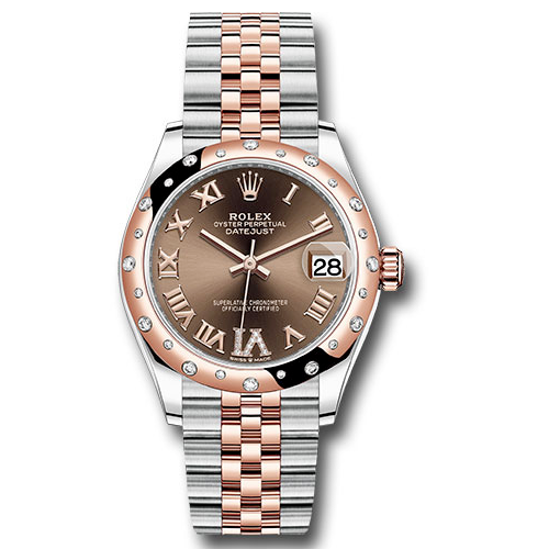 Rolex 278341RBR chodj Oyster Perpetual Datejust Ladies Watch. 31mm Diamond Fluted Bezel. Round 18kt rose gold bezel that is adorned with diamonds for a unique, contemporary appearance.