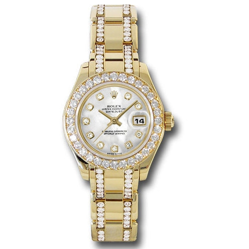 Rolex 80298.74948 md Masterpiece Oyster Perpetual Lady-Datejust Pearlmaster Watch. 29mm 18K yellow gold case, bezel set with 32 diamonds, mother of pearl dial, diamond hour markers, Pearlmaster bracelet set with 174 diamonds.