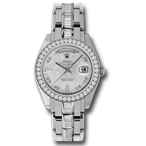 Rolex 18956 BRIL Oyster Perpetual Day-Date Special Edition Watch. 39mm platinum case, bezel set with 40 diamonds, diamond meteorite dial, Oyster 20mm bracelet set with 71 Baguette Diamonds.