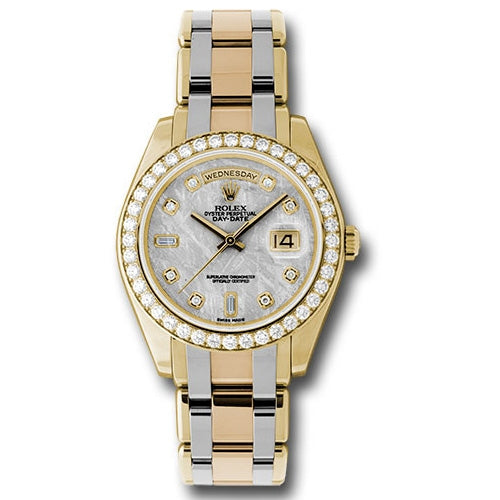Rolex 18948tri mtd Oyster Perpetual Day-Date Special Edition Watch. 39mm yellow gold case, bezel set with 40 diamonds, meteorite dial, 8 round and 2 baguette diamond hour markers, Tridor Oyster 20mm bracelet (18kt yellow, white, and pink gold)