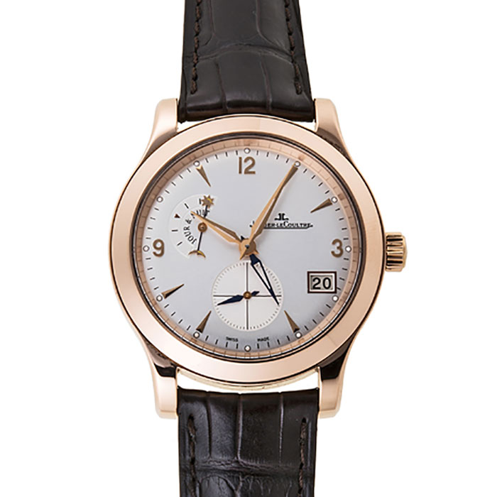 Jaeger-LeCoultre Q1622420 Master Control Hometime Mens Watch. Self-winding automatic watch. 40mm 18kt rose gold case surrounding a silver dial on a black alligator strap with an 18k rose gold deployment buckle. Functions include hours, minutes, small-seconds, GMT and day/night indicator.