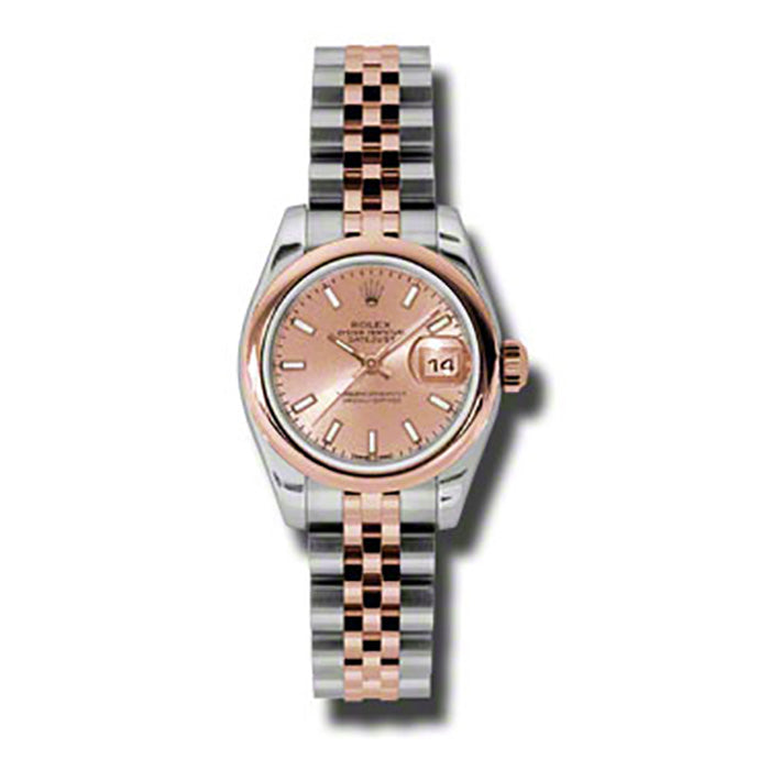Rolex 179161 psj Oyster Perpetual Lady Datejust Watch. 26mm stainless steel case, 18kt pink gold domed bezel, pink dial, index hour markers, and stainless steel and 18kt pink gold Jubilee bracelet.
