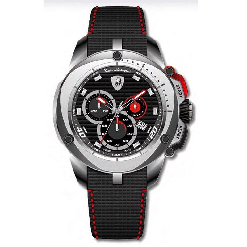 The Lamborghini Shield 7801 is a new series for Tonino Lamborghini. The classic styling balances beautifully with its upbeat look. Gently echoing the shape of the Spyder yet softer in design the 7801 is a real catch. The case is stainless steel and the crystal is mineral glass with a sapphire coating. The dial is carbon fiber in the 7801 and the hands are coated with luminous. The strap is carbon pattern leather and the watch is water resistant 100 meters / 330ft.