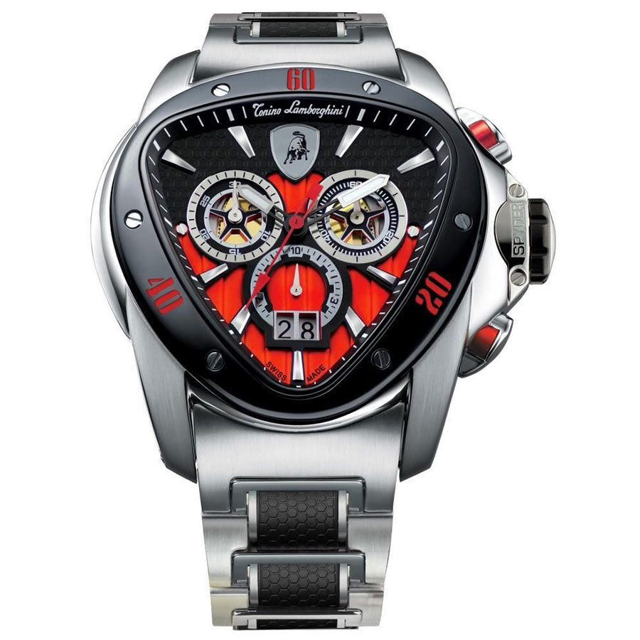 Lamborghini Spyder 1115 Men's Watch. Stainless Steel with Rubber Inserts Band, Stainless Steel Case, Quartz Chrono Movement.