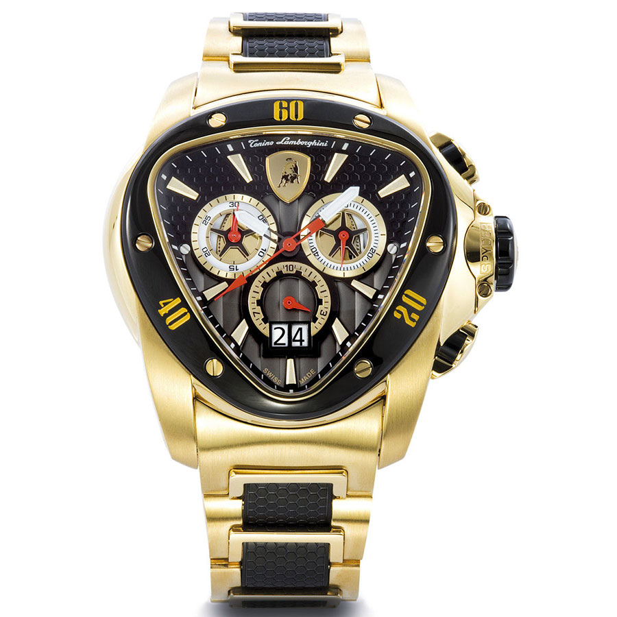 Lamborghini Spyder 1100 Model 1119 Men's Watch. Stainless Steel Gold PVD Coated with Rubber Inserts Case, Stainless Steel Gold PVD Coated Band, Quartz Chrono Movement